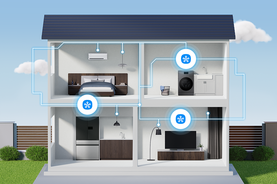 Start your smart home with Samsung TV and home appliances. Even without a separate hub, the Samsung TV and home appliances will act as hubs, letting you easily connect the devices you need to SmartThings and control them conveniently.